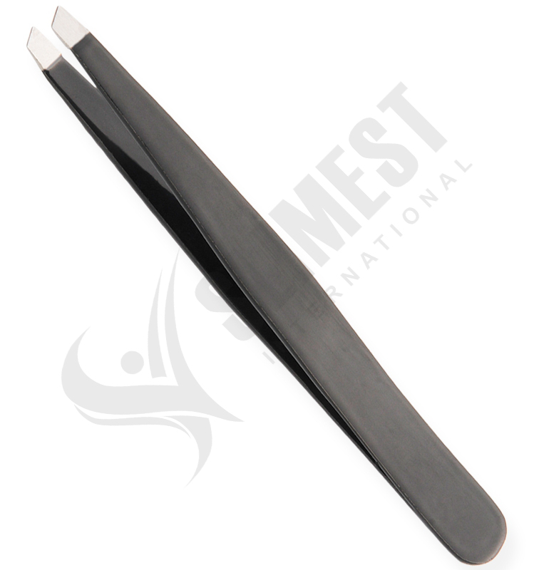 Eyebrow Tweezers Colored, Slanted Available Sizes. 10 cm Details. All tweezers are made of superior quality stainless steel J1/410, HRC° (hardness) 43° – 45°. Beautifully designed top quality stainless steel. This all purpose tweezers is ideal for facial hairs, bikini lines and other unwanted body hair. Available in slanted, straight and pointed tips