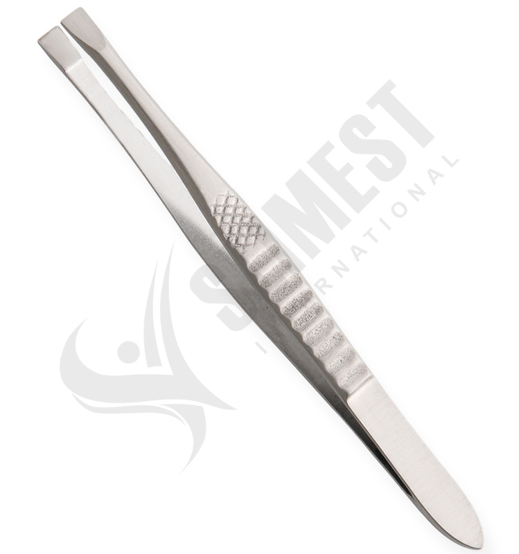 Eyebrow Tweezers Texture on Handle, Straight Available Sizes. 10 cm Details. All tweezers are made of superior quality stainless steel J1/410, HRC° (hardness) 43° – 45°. Beautifully designed top quality stainless steel. This all purpose tweezers is ideal for facial hairs, bikini lines and other unwanted body hair. Available in slanted, straight and pointed tips