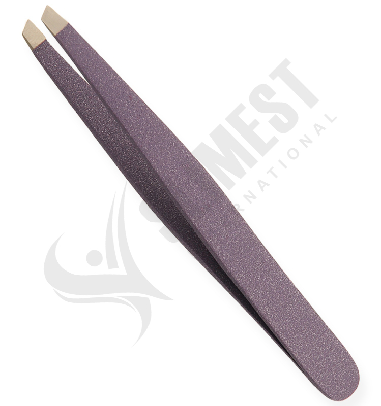 Eyebrow Tweezers Colored, Slanted Available Sizes. 9 cm Details. All tweezers are made of superior quality stainless steel J1/410, HRC° (hardness) 43° – 45°. Beautifully designed top quality stainless steel. This all purpose tweezers is ideal for facial hairs, bikini lines and other unwanted body hair. Available in slanted, straight and pointed tips