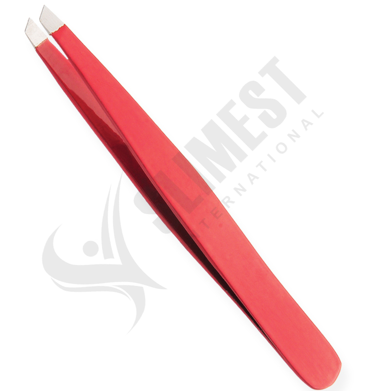 Eyebrow Tweezers Colored, Slanted Available Sizes. 9 cm Details. All tweezers are made of superior quality stainless steel J1/410, HRC° (hardness) 43° – 45°. Beautifully designed top quality stainless steel. This all purpose tweezers is ideal for facial hairs, bikini lines and other unwanted body hair. Available in slanted, straight and pointed tips