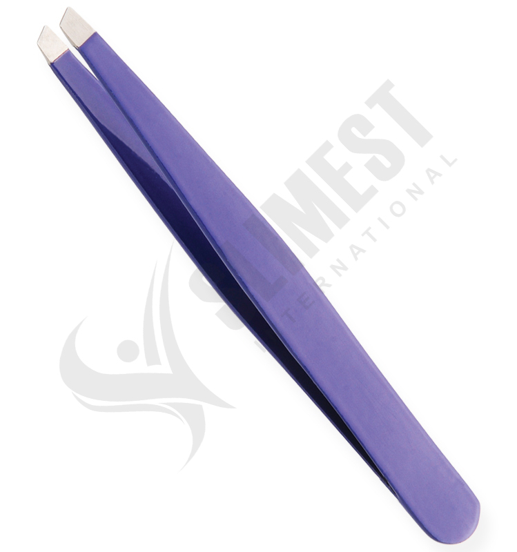 Eyebrow Tweezers Colored, Slanted Available Sizes. 10 cm Details. All tweezers are made of superior quality stainless steel J1/410, HRC° (hardness) 43° – 45°. Beautifully designed top quality stainless steel. This all purpose tweezers is ideal for facial hairs, bikini lines and other unwanted body hair. Available in slanted, straight and pointed tips