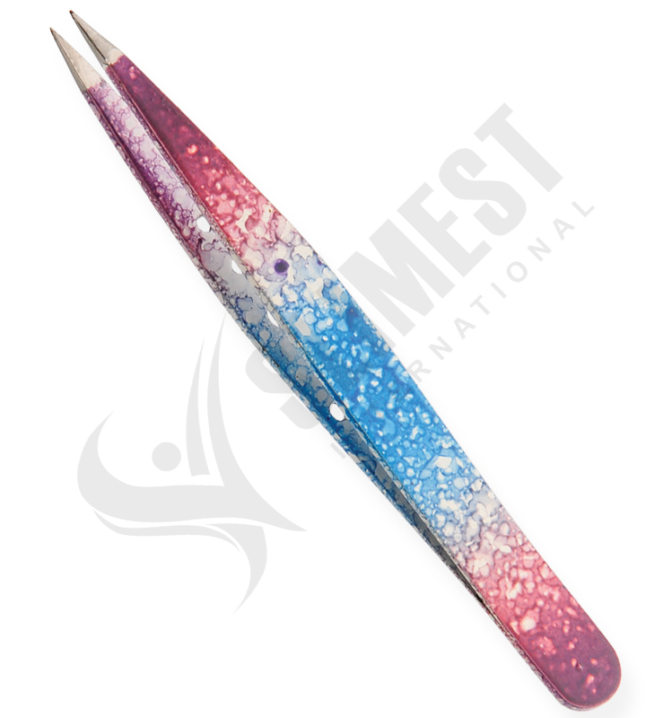 Eyebrow Tweezers Multi-Colored Design, Straight Available Sizes. 10 cm Details. All tweezers are made of superior quality stainless steel J1/410, HRC° (hardness) 43° – 45°. Beautifully designed top quality stainless steel. This all purpose tweezers is ideal for facial hairs, bikini lines and other unwanted body hair. Available in slanted, straight and pointed tips