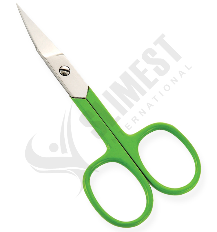 Available Sizes. 3.5 in Details. All scissors are made of superior quality stainless steel 410, HRC° (hardness) 45° – 48°. Available in Blister Packing, Pouches and Plastic Bags. Nail Scissors Tower Pointed Purple Color Adjustable Screw, Curved