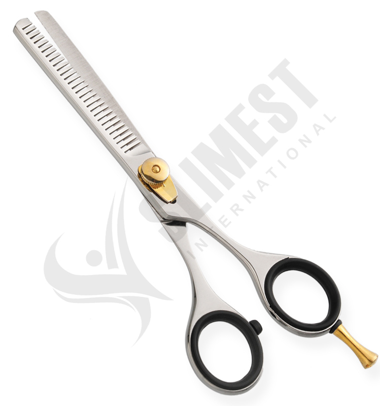 Professional Razor Edge Thinning Scissor Movable Screw with Removable Finger Rest. Available Sizes. 4 in, 4.5 in Details. Razor Edge thinning scissors made of Japanese stainless steel J/2 – 420, HRC° (hardness) 52° – 55°. Also available in 440C HRC° (hardness) 60° – 65°. Available in fix, limitation, adjustable and hand adjustable screws with and without leaf spring.