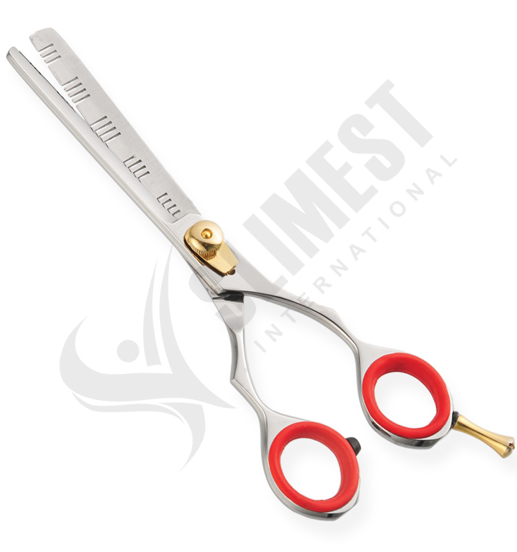 Professional Razor Edge Thinning Scissor Movable Screw with Removable Finger Rest. Available Sizes. 4 in, 4.5 in Details. Razor Edge thinning scissors made of Japanese stainless steel J/2 – 420, HRC° (hardness) 52° – 55°. Also available in 440C HRC° (hardness) 60° – 65°. Available in fix, limitation, adjustable and hand adjustable screws with and without leaf spring.