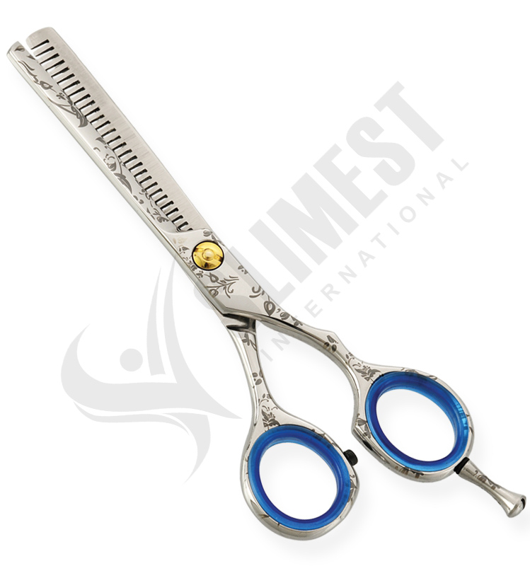 Professional Razor Edge Multi-Colored Thinning Scissor Adjustable Screw with Removable Finger Rest. Available Sizes. 4 in, 4.5 in Details. Razor Edge thinning scissors made of Japanese stainless steel J/2 – 420, HRC° (hardness) 52° – 55°. Also available in 440C HRC° (hardness) 60° – 65°. Available in fix, limitation, adjustable and hand adjustable screws with and without leaf spring