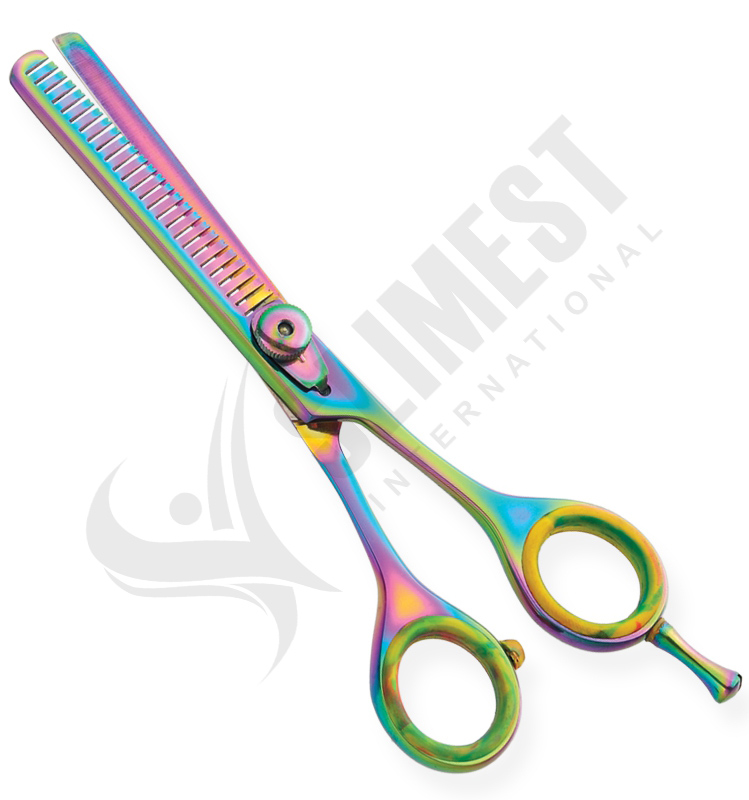 Professional Razor Edge Titanium Coated Thinning Scissor, Movable Screw with Removable Finger Rest. Available Sizes. 4 in, 4.5 in Details. Razor Edge thinning scissors made of Japanese stainless steel J/2 – 420, HRC° (hardness) 52° – 55°. Also available in 440C HRC° (hardness) 60° – 65°. Available in fix, limitation, adjustable and hand adjustable screws with and without leaf spring.