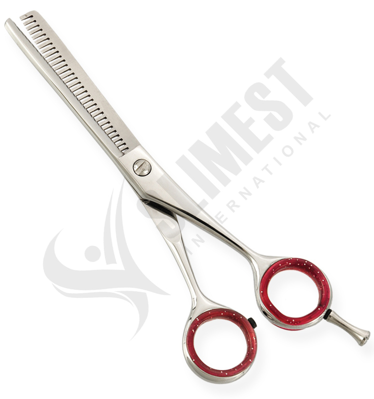 Professional Razor Edge Thinning Scissor Adjustable Screw with Removable Finger Rest. Available Sizes. 4 in, 4.5 in Details. Razor Edge thinning scissors made of Japanese stainless steel J/2 – 420, HRC° (hardness) 52° – 55°. Also available in 440C HRC° (hardness) 60° – 65°. Available in fix, limitation, adjustable and hand adjustable screws with and without leaf spring.