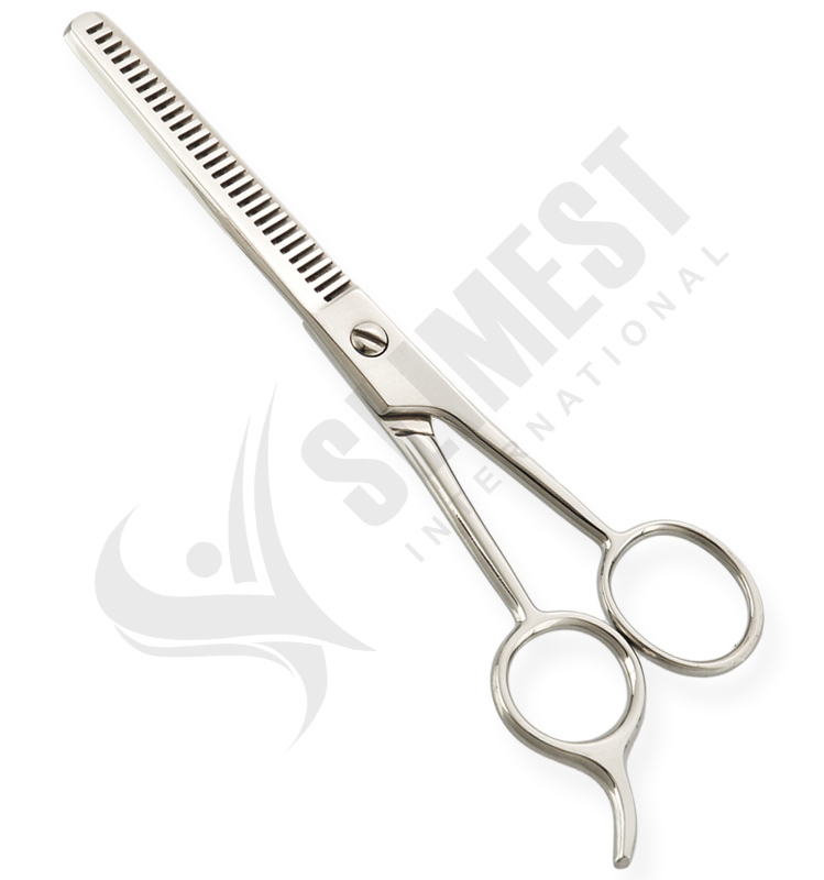 Thinning Scissors. Available Sizes. 4 in, 4.5 in Details. Standard thinning scissors are made of superior quality stainless steel 410, HRC° (hardness) 52° – 55°. Available in fix, limitation, adjustable and hand adjustable screws with and without leaf spring.