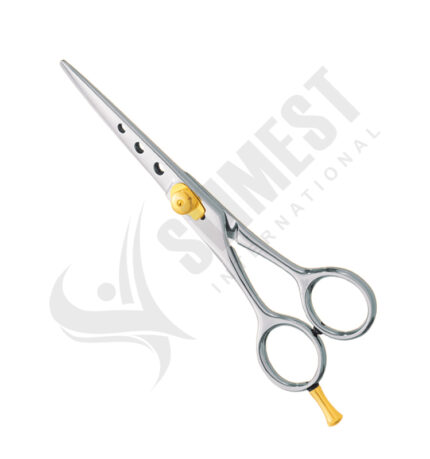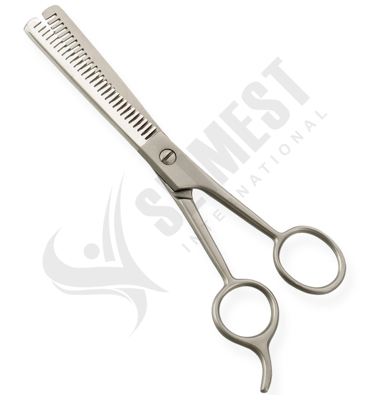 Thinning Scissors. Available Sizes. 4 in, 4.5 in Details. Standard thinning scissors are made of superior quality stainless steel 410, HRC° (hardness) 52° – 55°. Available in fix, limitation, adjustable and hand adjustable screws with and without leaf spring.